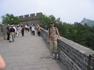 Far behind me (a bit hazy) from the Bund (stretch of embanked riverfront in Shanghai) is the Oriental Pearl TV tower.